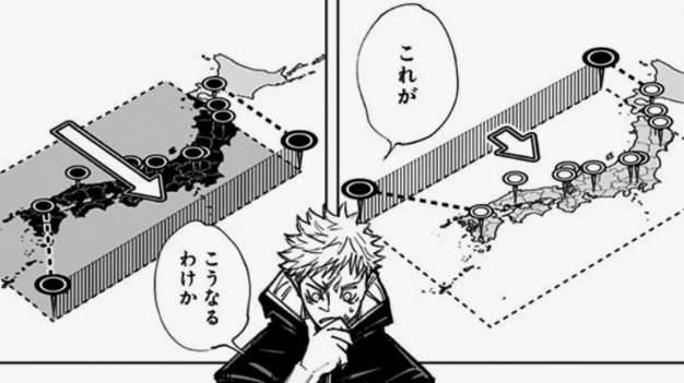 | 舞台 | 日本各地に張られた10個の結界(コロニー)が戦場になる | 死滅回游編全般 | 日本縦断 |