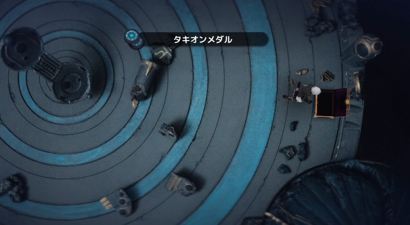 仲間全員を集め、神機の強化クエストをクリアすると、中央神殿の実験室に宝箱が出現し、「タキオンメダル」を入手することが可能になります。