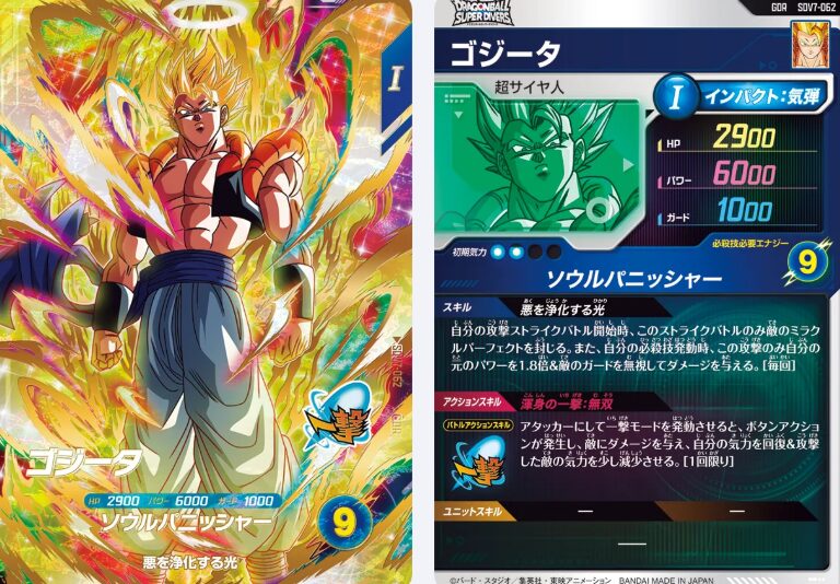 SDV7-062ゴジータSB勝率補助/締め補助(ガード無視)攻撃SB開始時に敵ミラクルパーフェクト封じ、必殺技発動時に元パワー1.8倍+ガード無視など、SBを通す・締めを太くする両方に寄せられる3rdでの締め役を「SDV7-SEC2単体」に寄せすぎない保険としても使いやすい
