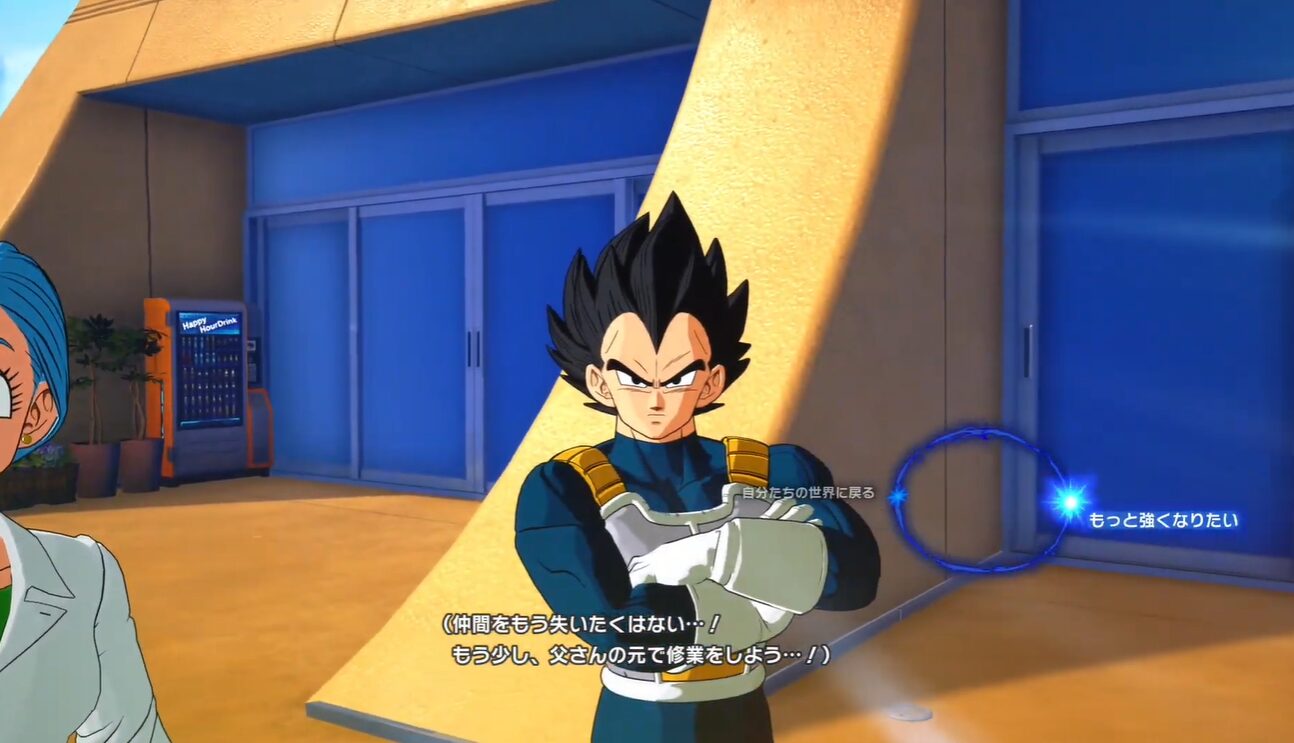 最初の分岐点は、第6章「トランクスの選択」です。このエピソードの途中で現れる選択肢で、「もっと強くなりたい」を選ぶことが、すべてのIFルートの前提条件になっています。ここで別の選択肢を選んでしまうと、そもそもSparking!エピソードに繋がる流れが発生せず、通常ルートのまま未来に戻る展開で固定されてしまいます。未来に帰らず現代に残って修業を続ける、というこのIF設定のスタート地点だと思って、必ず意識して選びましょう。