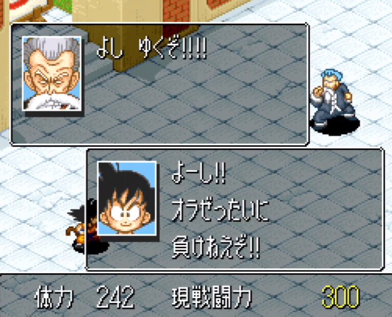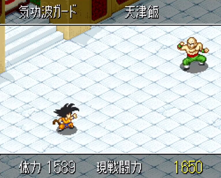 178決勝戦、天津飯と闘う本戦決勝で天津飯と対戦するクライマックスバトル。ゲーム上は1つのイベント番号だが、実際は途中演出を挟みつつの長期戦で、悟空側の総仕上げとなる難関。VS 天津飯(決勝バトル)CH39:第22回天下一武道会 準決勝とライバル対決JC11巻 悟空vs天津飯戦
