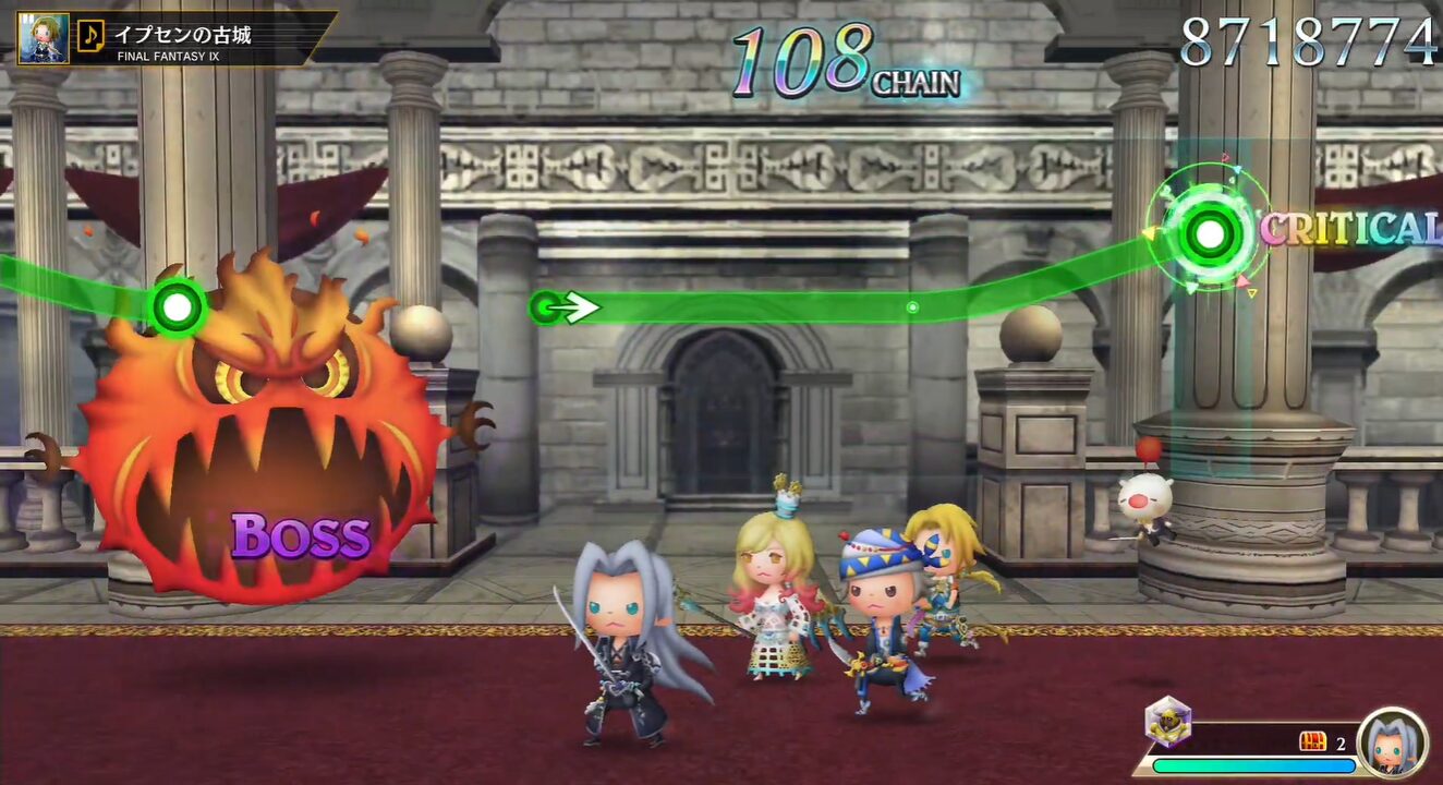 FF9シリーズクエストの「イプセンの古城」は、FMS(移動ステージ)でありながら「火属性のダメージを与えずにボスモンスターを撃破しよう」「味方の物理攻撃ダメージが半分になる」という2つの縛りがかかっているのがポイントです。