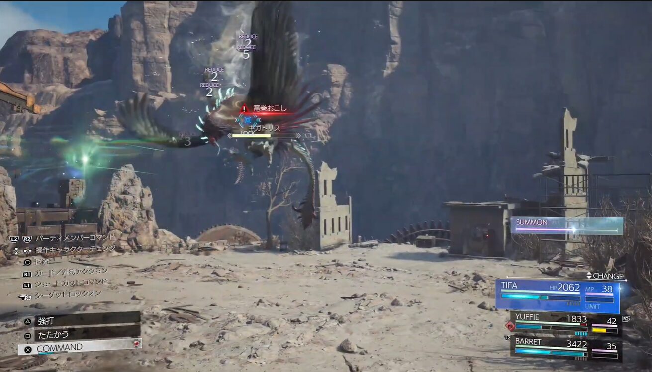 ヘリガンナーカスタムが「98式制圧機銃・改」で攻撃してきた際には、R1ボタンで即座にガードし、ATBゲージを効率的に溜めましょう。この技はガードすることでほとんどダメージを受けずに済みます。