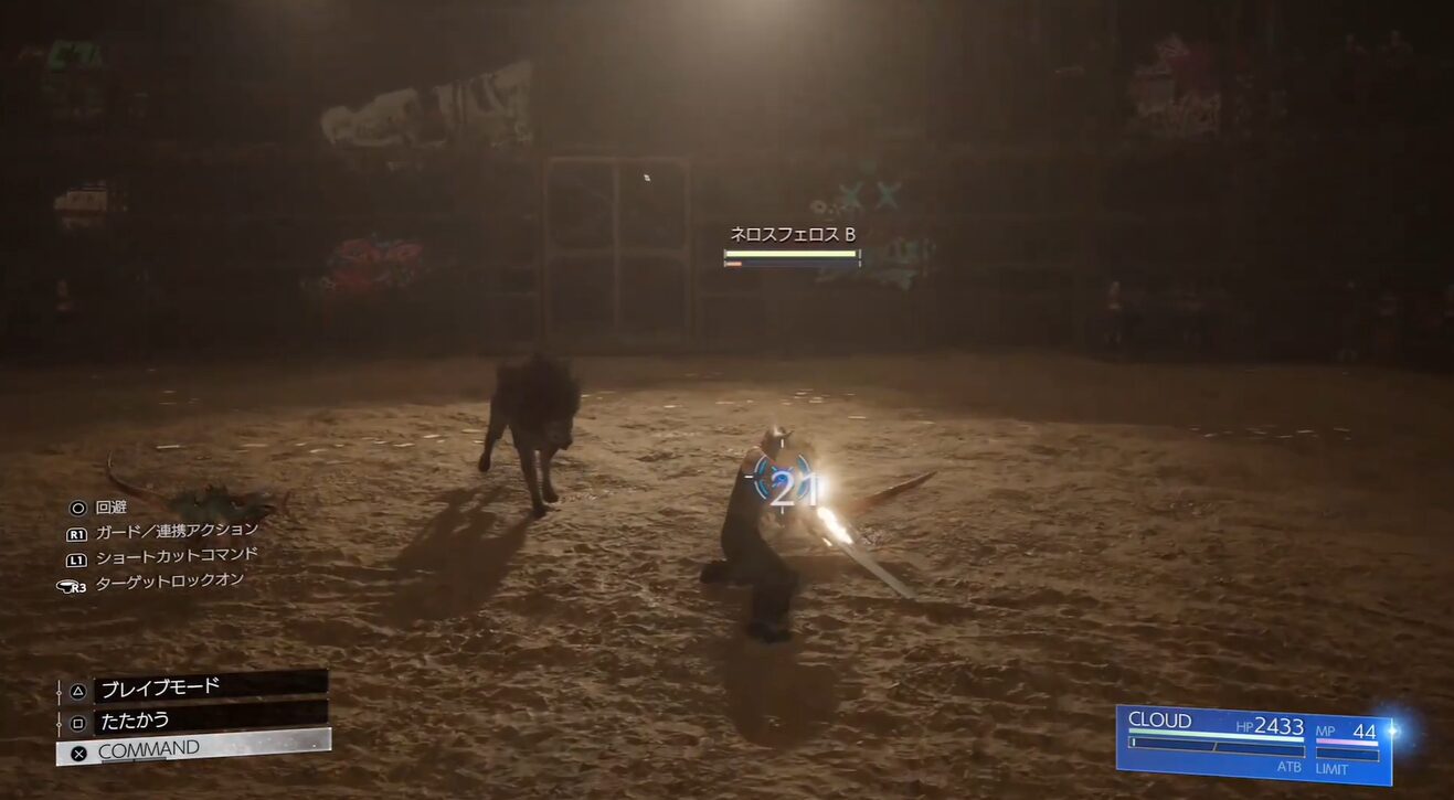 - 薙ぎ払い攻撃の活用: クラウドの▢ボタン長押しによる広範囲薙ぎ払い攻撃が有効です。サボテンダーは動きが素早いですが、この攻撃で効率よくダメージを与えられます。