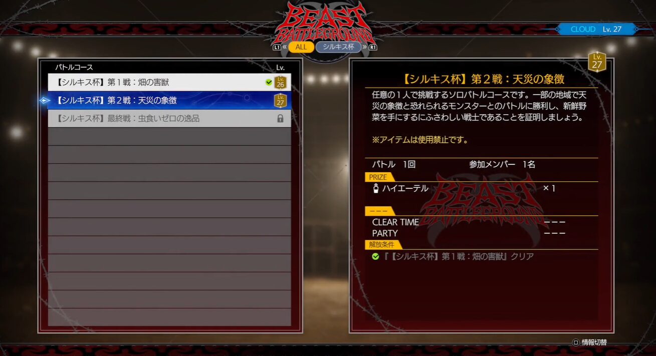 アイテム使用は禁止なので、『かいふく』マテリアを装備して挑戦しましょう。