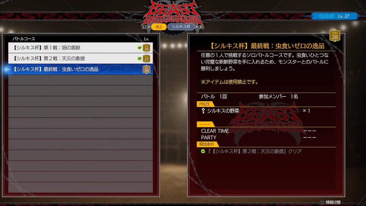 ミニゲームで指定スコアを達成することで、シルキスの野菜を入手できます。更に成績が良いとティファの武器「ドラゴンクロー」も手に入ります。