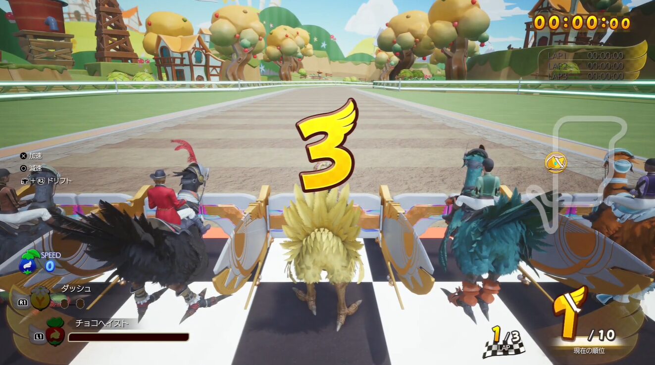- カウントダウンの2のタイミングで☓ボタンを押し続けることで、レース開始時に急加速します。このテクニックで一気に先頭に立つことが可能です。