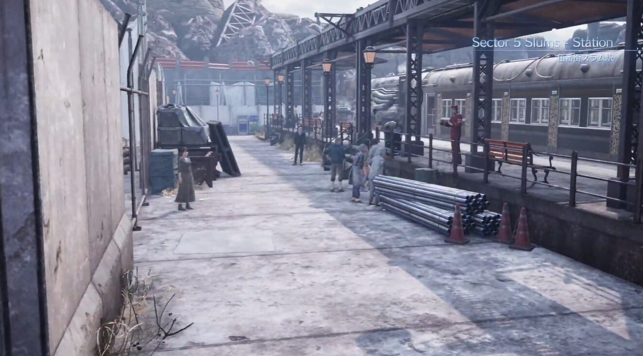 - 道なりに進むと伍番街スラム駅へ