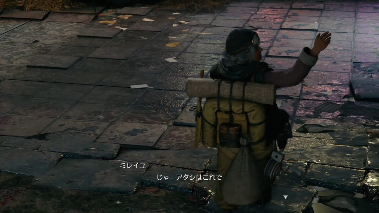 - ウォール・マーケットの入り口にで「ミレイユ」と話す
