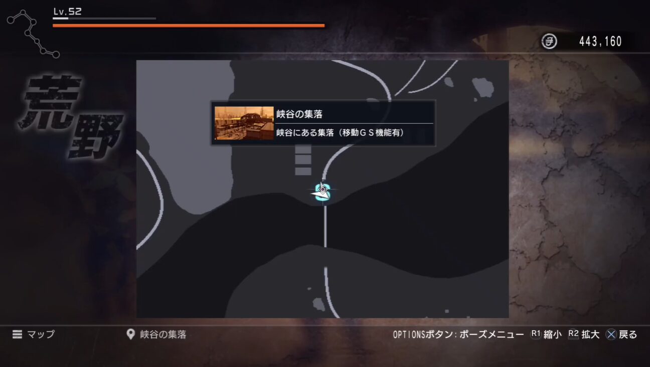 - 開始地点は「荒野:峡谷の集落」のバギー置き場にいる老人
