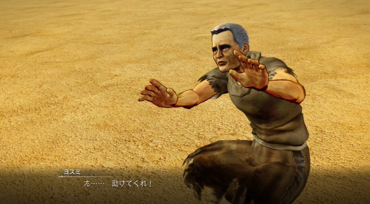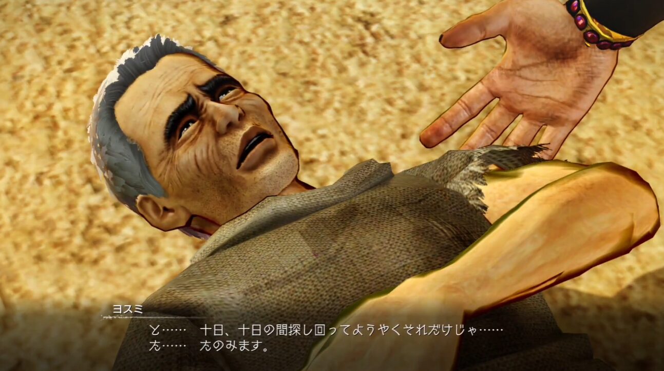 | 2 | 集落の南側の目的地へ向かう | 指示が出たら、荒野の南側へ移動します。目的地に近づくとイベントが入り、野盗がヨスミに絡む展開へ進みます。 |