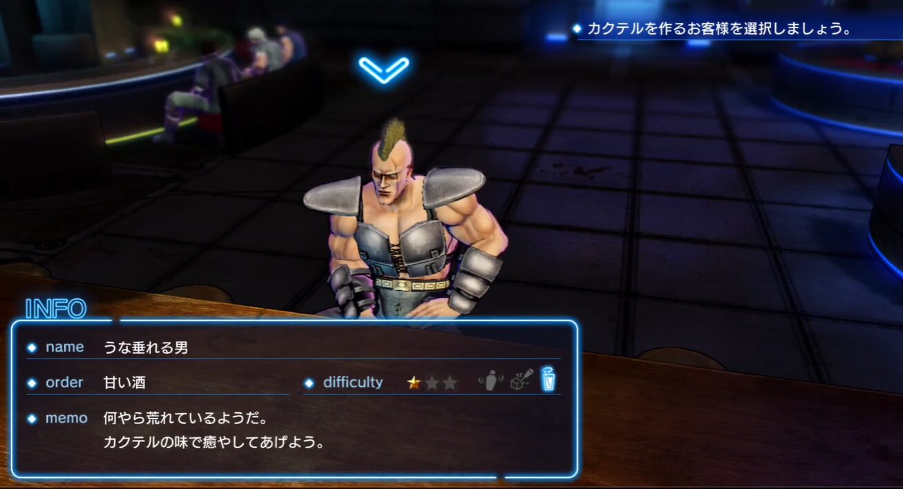 | 1 | バー「ラスティネイル」でバーテンダー・ケンを遊ぶ | カイルが客として来店する回が条件です。カクテル作成に成功してミニゲームを終えると、イベントが続いてミッションが動きます。 |