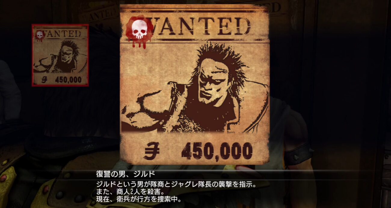 1兵舎で賞金首の依頼を受けるエデンの兵舎で衛兵に話しかけ、ジルドの依頼を受注します。受注した時点で目的地が荒野側に切り替わります。