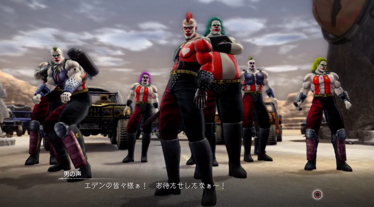 サイドミッション77「世紀末愉快犯」は、兵舎で受けられる賞金首ハンター系の依頼で、「世紀末サーカス団」を名乗る犯罪者集団をエデン正門前(検問所前)で迎え撃つミッションです。流れはシンプルで、受注後に正門へ向かい、正門向かいの兵士に話しかけるだけで戦闘に入れます。