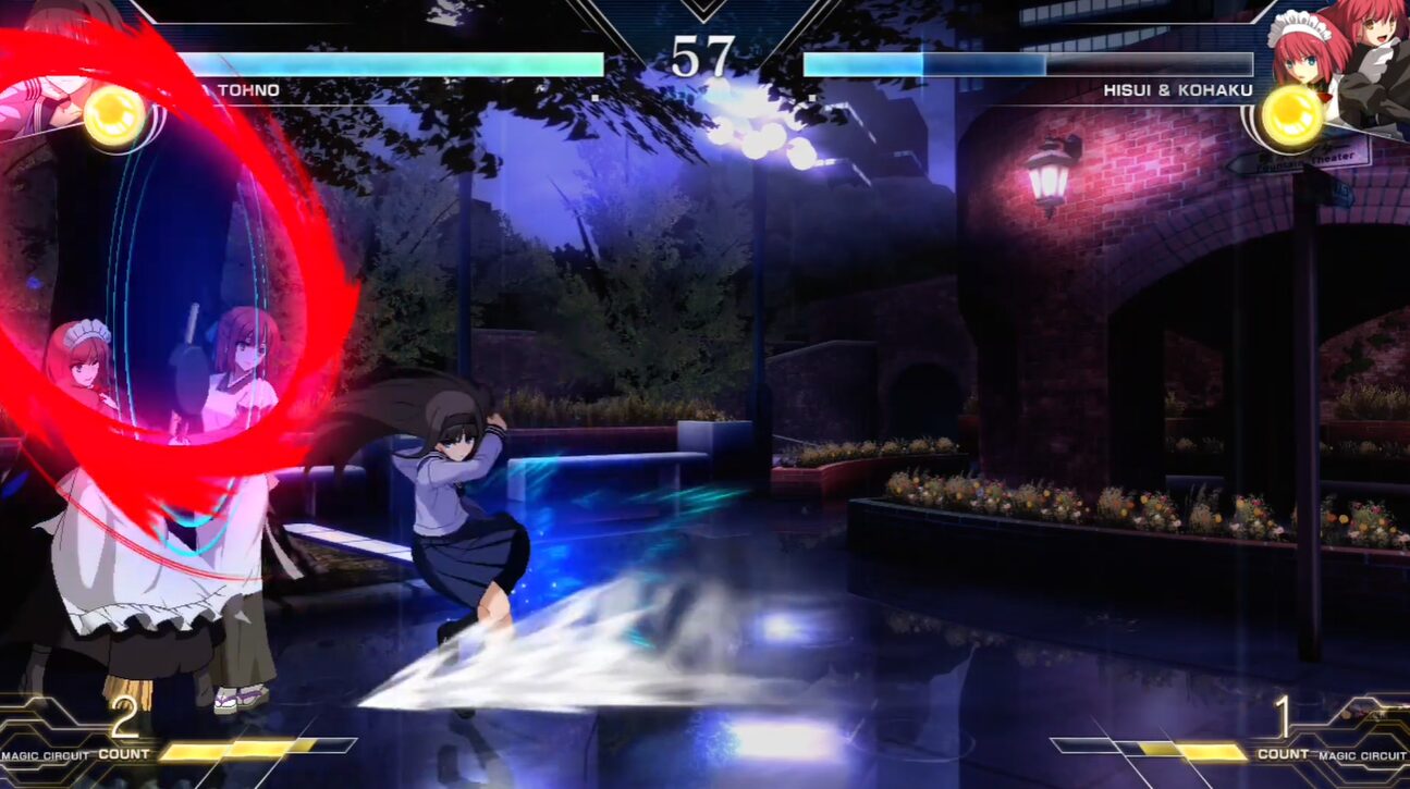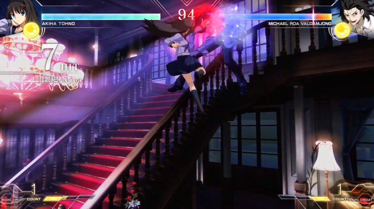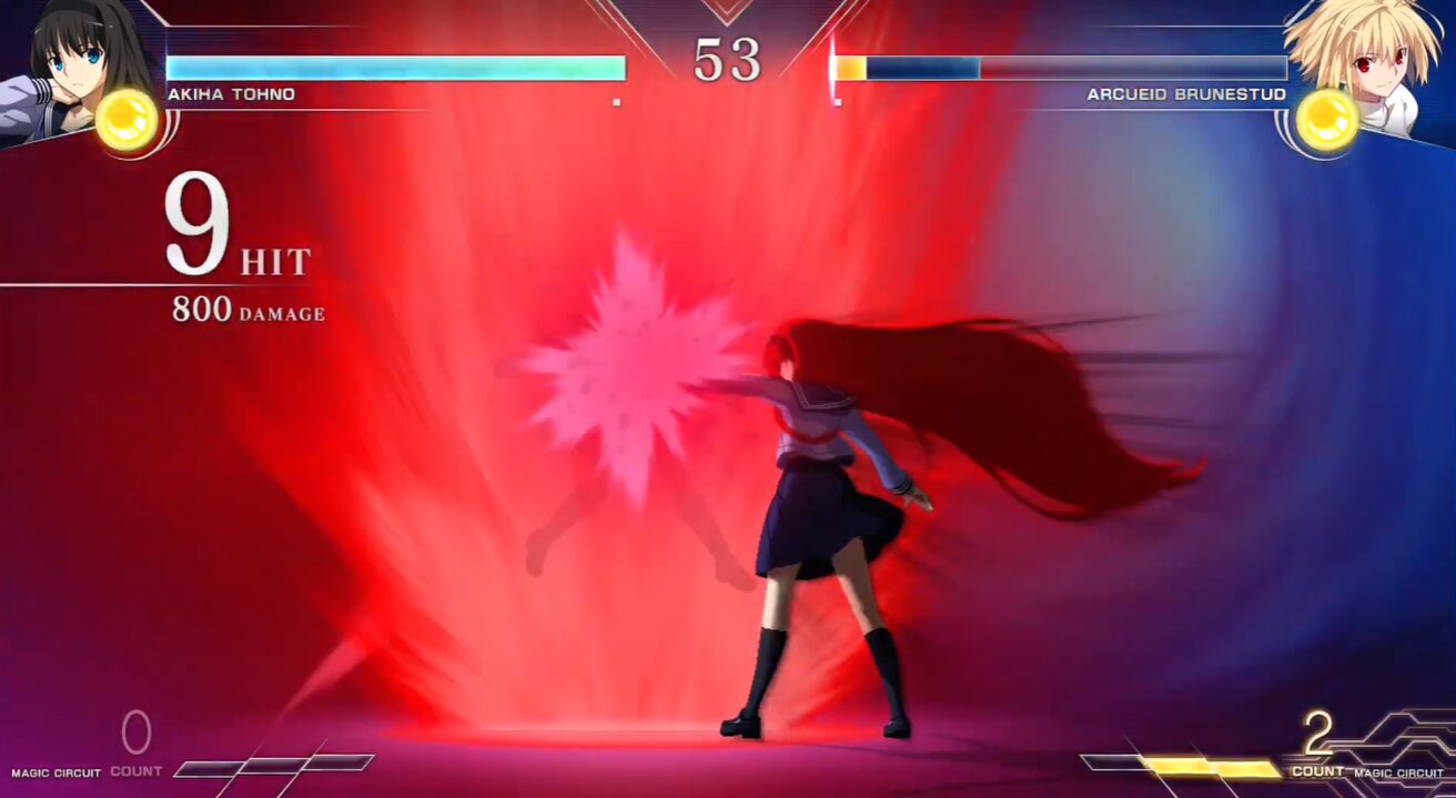 『MELTY BLOOD: TYPE LUMINA』の遠野秋葉は、コンボ火力を追い切るよりも、エリアル(空中コンボ)から空投げで締めて起き攻め(セットプレイ)に持ち込むのが分かりやすい強みです。さらに実戦では、1ゲージを使ってEX紗燐(236C)で締め、確定ダウンから設置を絡めた攻めを作ることで、秋葉らしい決定力が出しやすくなります。