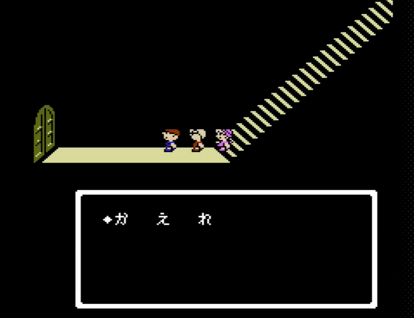 1階にいるママに話しかけると「パパに電話して」と言われます。電話に「はなす」コマンドを使用し、パパから「地下室の鍵を探せ」と指示されます。 - 地下室の鍵入手