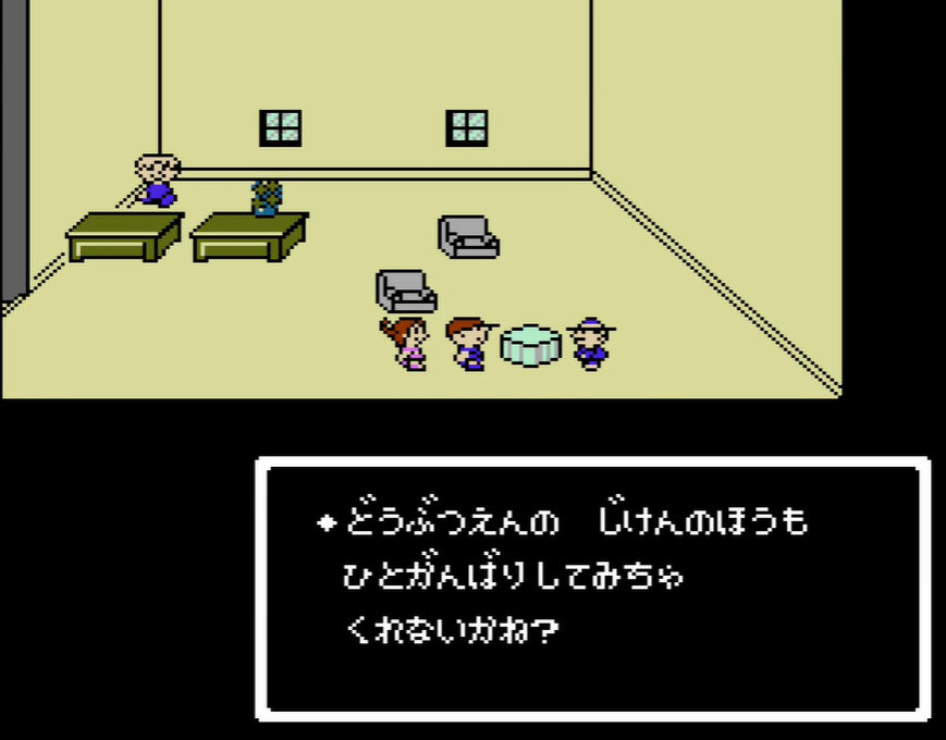 - ママとの会話:1階にいるママに話しかけると、好きな献立を食べて休むことができ、HPやPPを無料で回復できます。しばらくは家の周辺でレベル上げをしましょう。