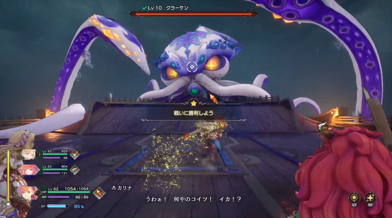 この戦闘では、クラーケンの弱点である火属性の攻撃を活用し、耐性のある水属性攻撃は避けることが重要です。戦闘前に適切な準備をして挑みましょう。