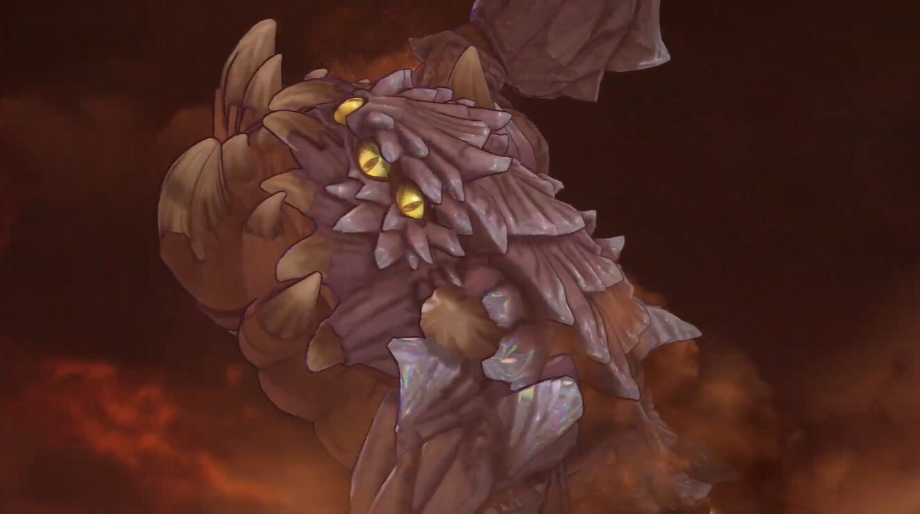 土の神獣ゲールースは5章で戦う強力なボスです。この巨大な砂中に潜む生物は、非常に硬い甲殻を持ち、その体表には精霊の力を秘めた宝珠が存在します。
