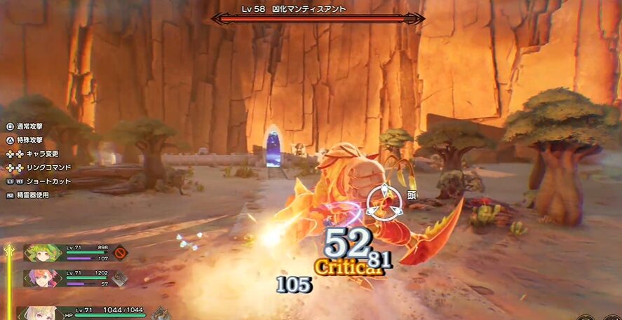 凶化マンティスアントは、斬属性や火属性の攻撃が効果的です。斬属性の武器や火属性の魔法を活用して、素早くHPを削っていきましょう。特に、斬属性のキャラクターを編成して攻撃を集中させると、戦闘が有利に進みます。 - 広範囲攻撃に注意