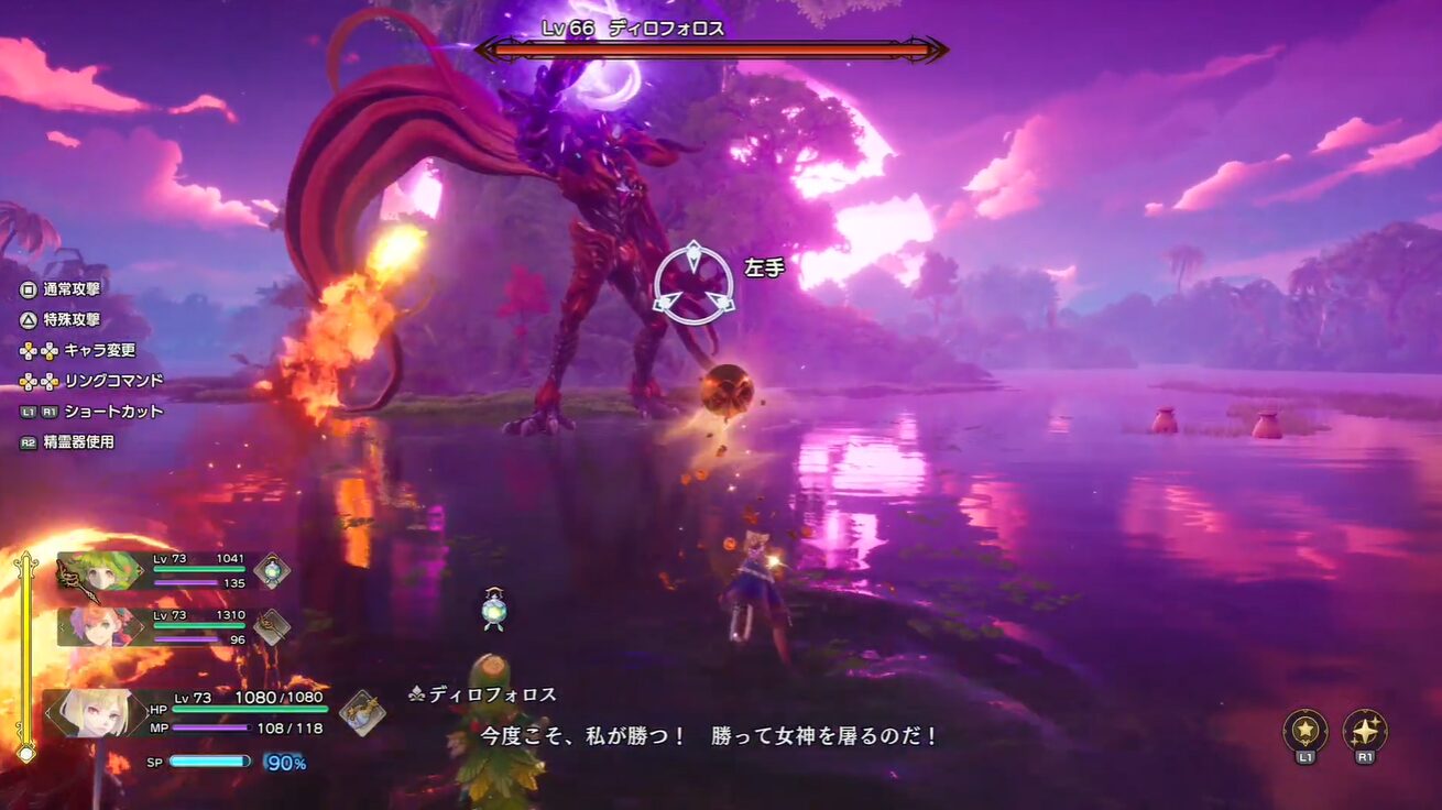 9章のボスであるディロフォロスは、体力が半分を切ると最終形態に変化する強敵です。このボス戦では、敵の広範囲攻撃や引き寄せ攻撃をしっかり回避し、戦略的に攻撃を仕掛ける必要があります。とくに、引き寄せからの爆発攻撃に対処することが、勝利の鍵です。
