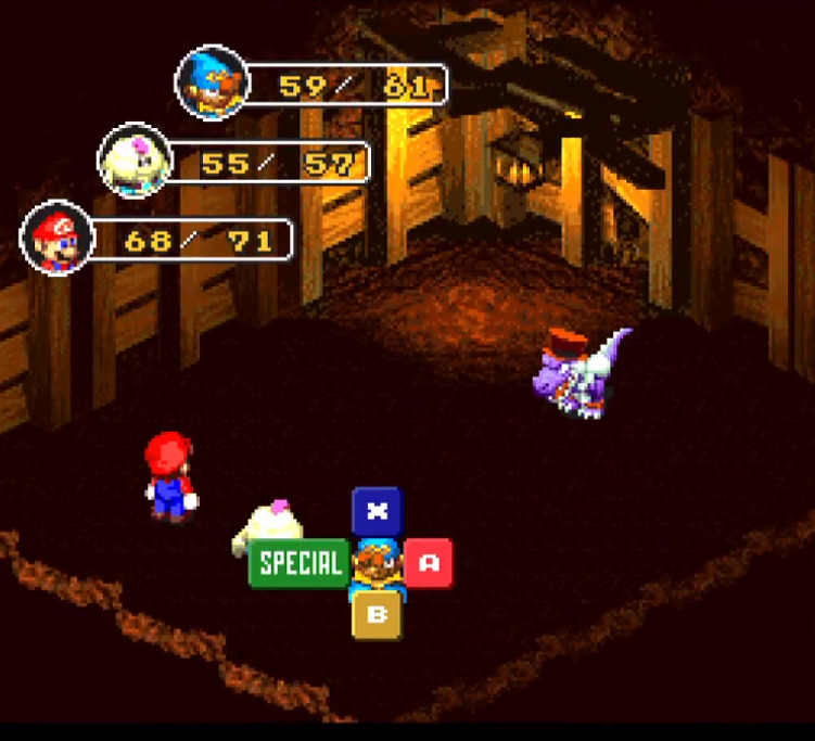 ⑤回復の適切なタイミング: 「すなあらし」のダメージを受けたら、マロは「かいふくシャワー」、マリオとジーノは「キノコ」を使って回復に徹する。