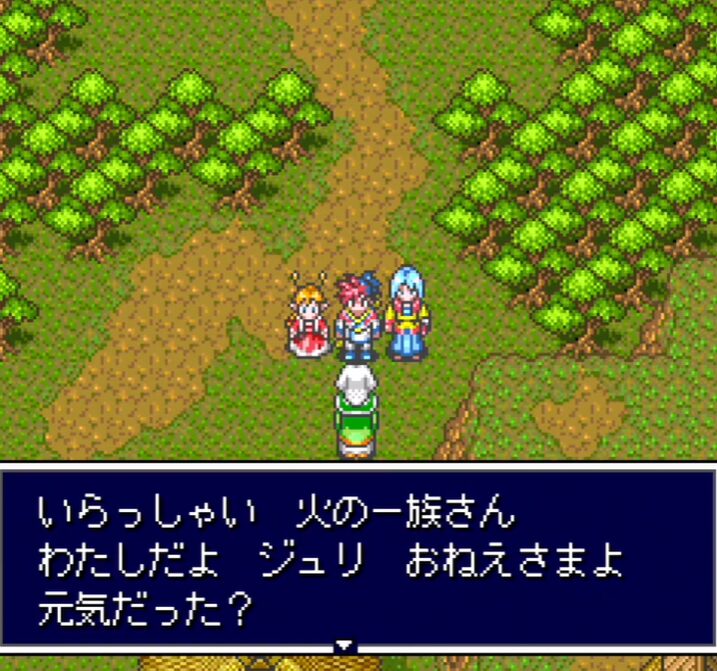 樹海2は、亀岡神社でジュリのイベントを進めた後に通れるようになります。ここは「進行の通路」として通りやすい場所ですが、樹海の区間は戻ってくる機会が減りやすいので、目に入る宝箱や拾い物は通過時点で回収しておく方が安全です。次のあたま山村で買い物と強化をまとめて行うため、樹海2では無理に消耗せず、回復アイテムは温存して抜ける意識で進めます。