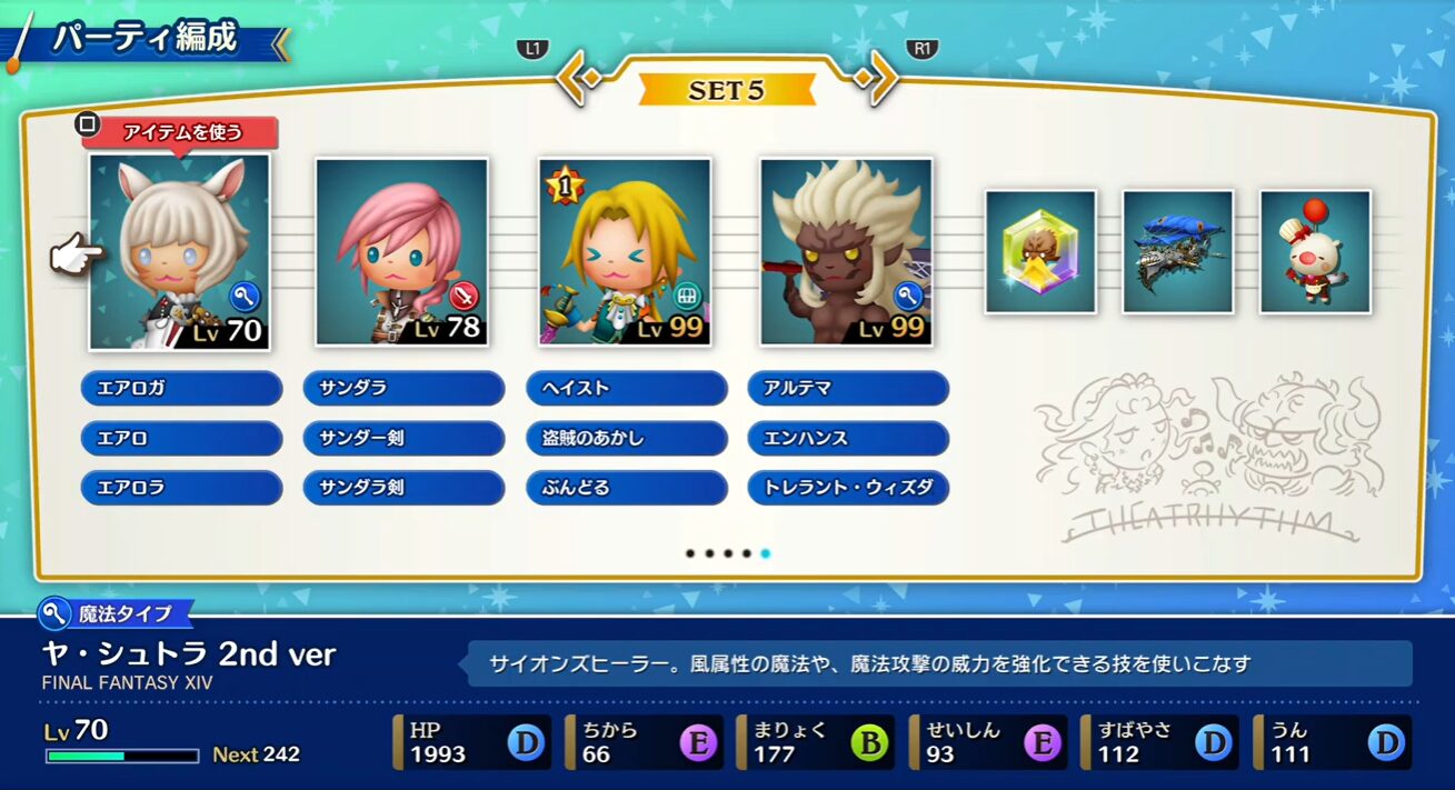 - 原作FFⅢでもサロニア編は「竜騎士でガルーダを倒す」山場であり、槍(風・雷属性武器)を揃えて挑む流れがシアトリズムのクエスト設計にも反映されている