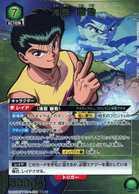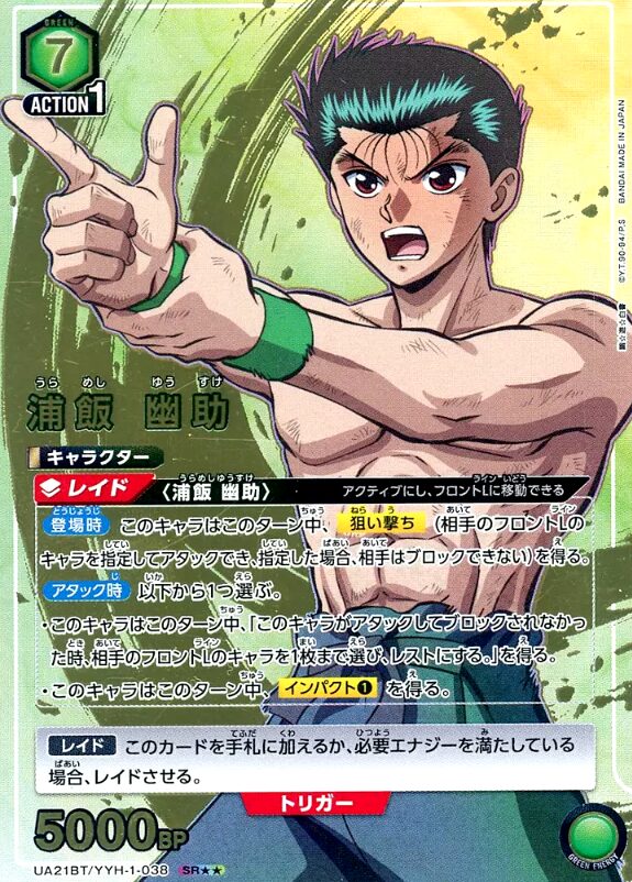 - UA21BT/YYH-1-038「浦飯 幽助」は、レイドで詰める主力アタッカー(フィニッシャー寄り)です。