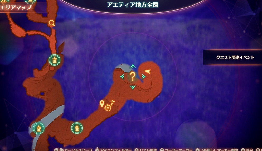 - アエティア地方のガムトの道標から北東の崖上でイベント