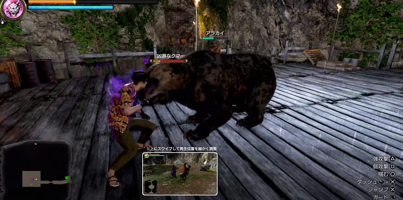 - 奥の回復スポット → 最終戦:海賊+凶暴なクマ/忍者系ボス:ラスト手前に回復スポットがあるので必ず立ち寄り、装備・指輪効果・所持品を整える。最奥は海賊の群れ+クマ+忍者系ボスの総力戦。ボスは跳びヒザ系の必殺技を持つため、縦の攻撃判定に合わせた横回避→背面取りで安定。殲滅後、宝箱を開けてクリアです。