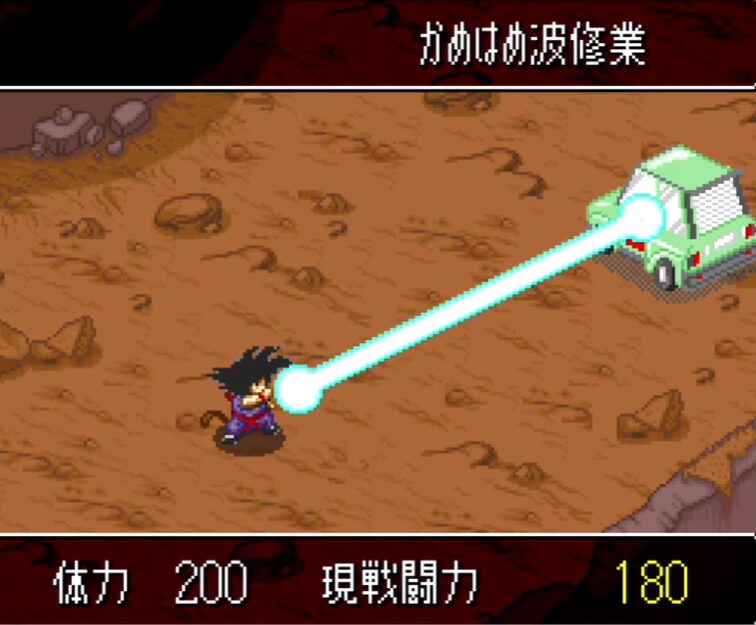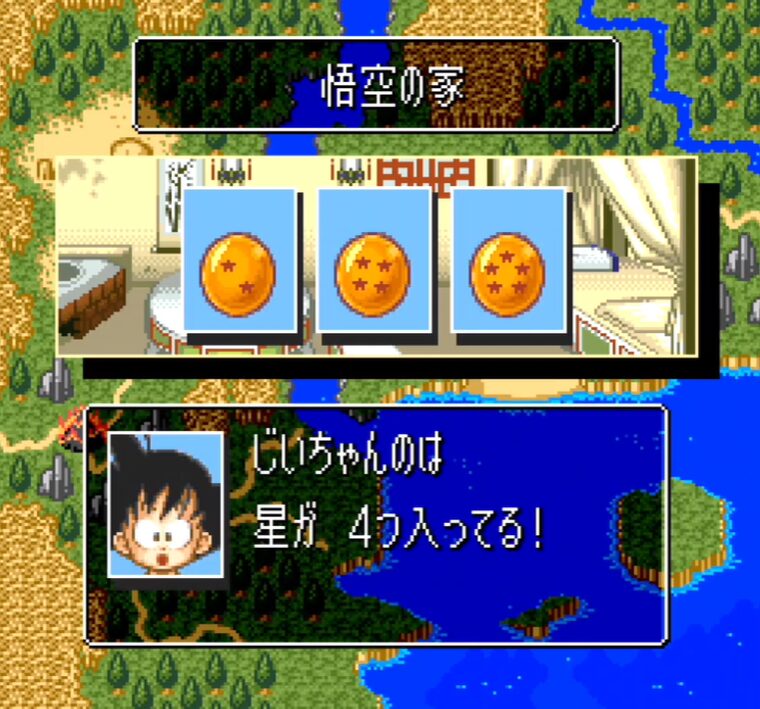 ゲームの進行は章仕立てになっており、それぞれの章が原作のストーリーラインに対応しています。例えば、序盤はドラゴンボールを集める旅を通して仲間が増えていく展開、中盤は亀仙人の下での修行と天下一武道会、後半はレッドリボン軍との全面対決から、占いババの占いを経て「じっちゃん」との再会、そしてピッコロ大魔王との死闘へとつながっていきます。